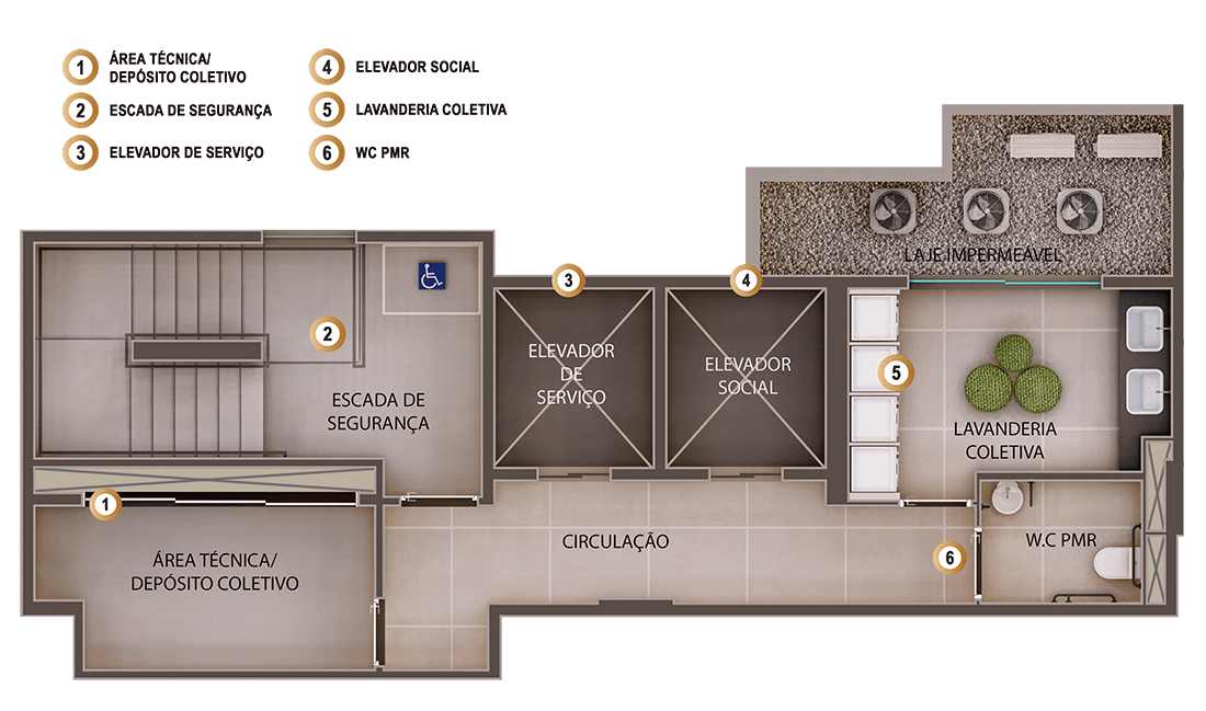 2 elevadores (social e serviço)